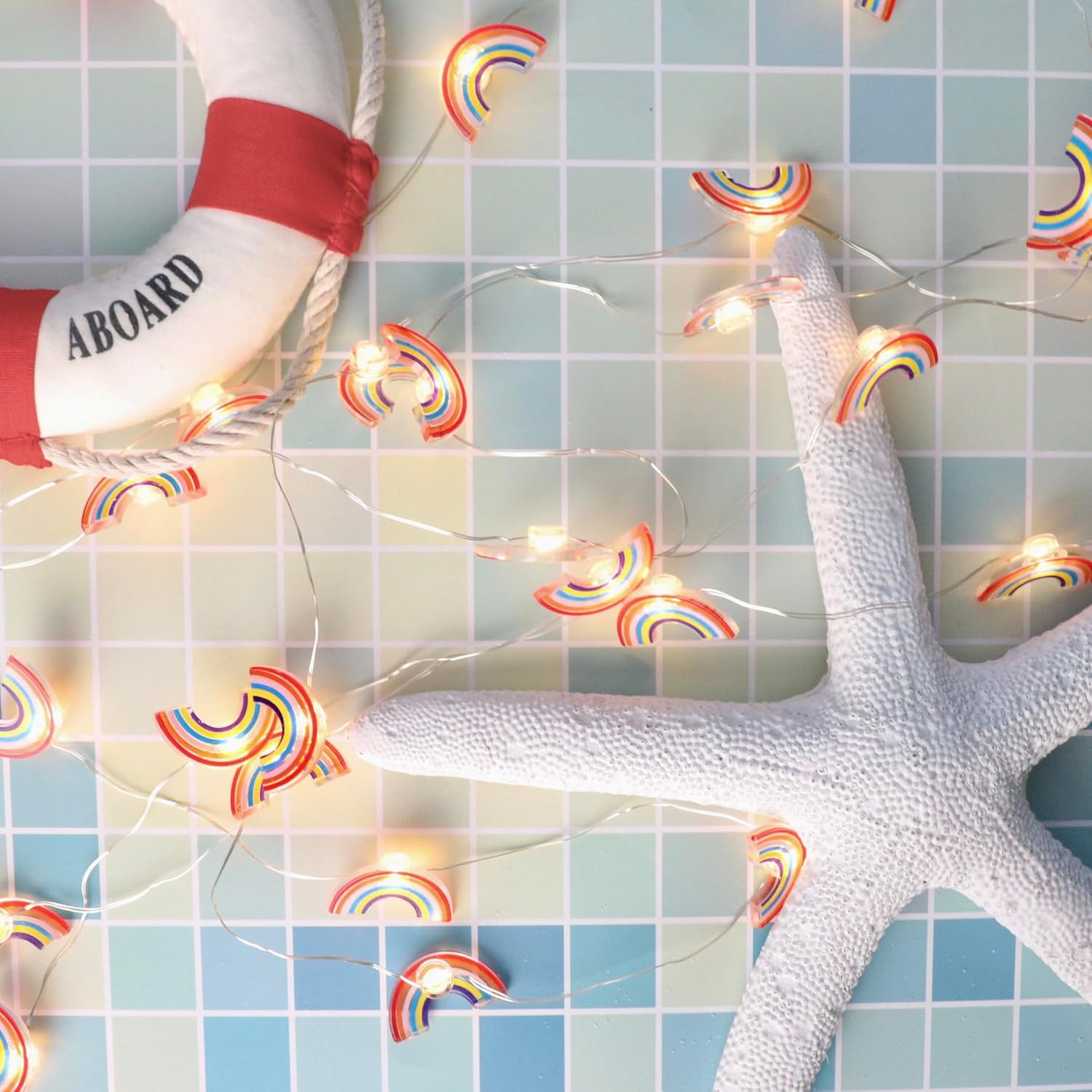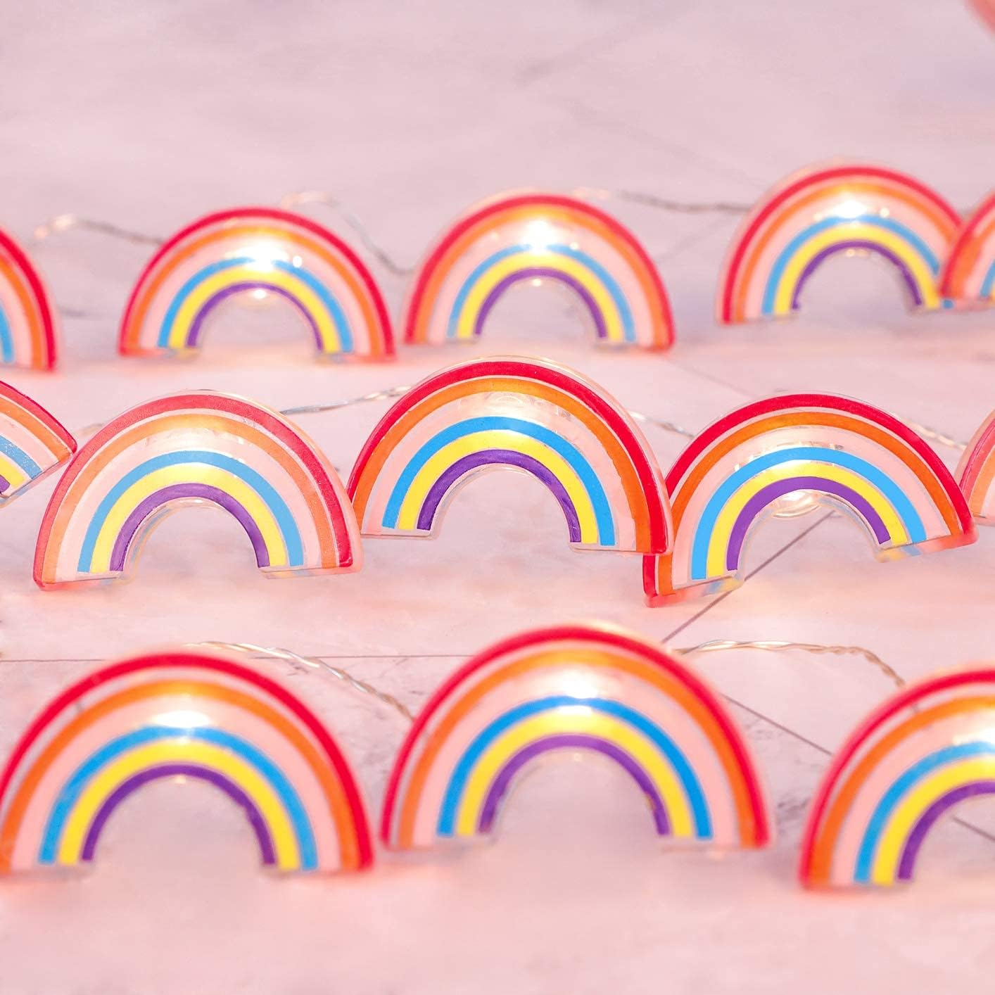 Fairy String Lights 10FT 30LEDs Rainbow Theme Battery or USB Operated with Remote Summer Boho Pink Hanging Lights for Patio Garden Home Party Wedding Classroom Girl Room Decorations